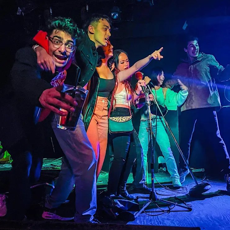 We arrive at the best karaoke dive bar in Gastown! As part of the pub crawl, we get priority on the first 5 songs of the night to be performed on an epic stage with lights and a great sound system.